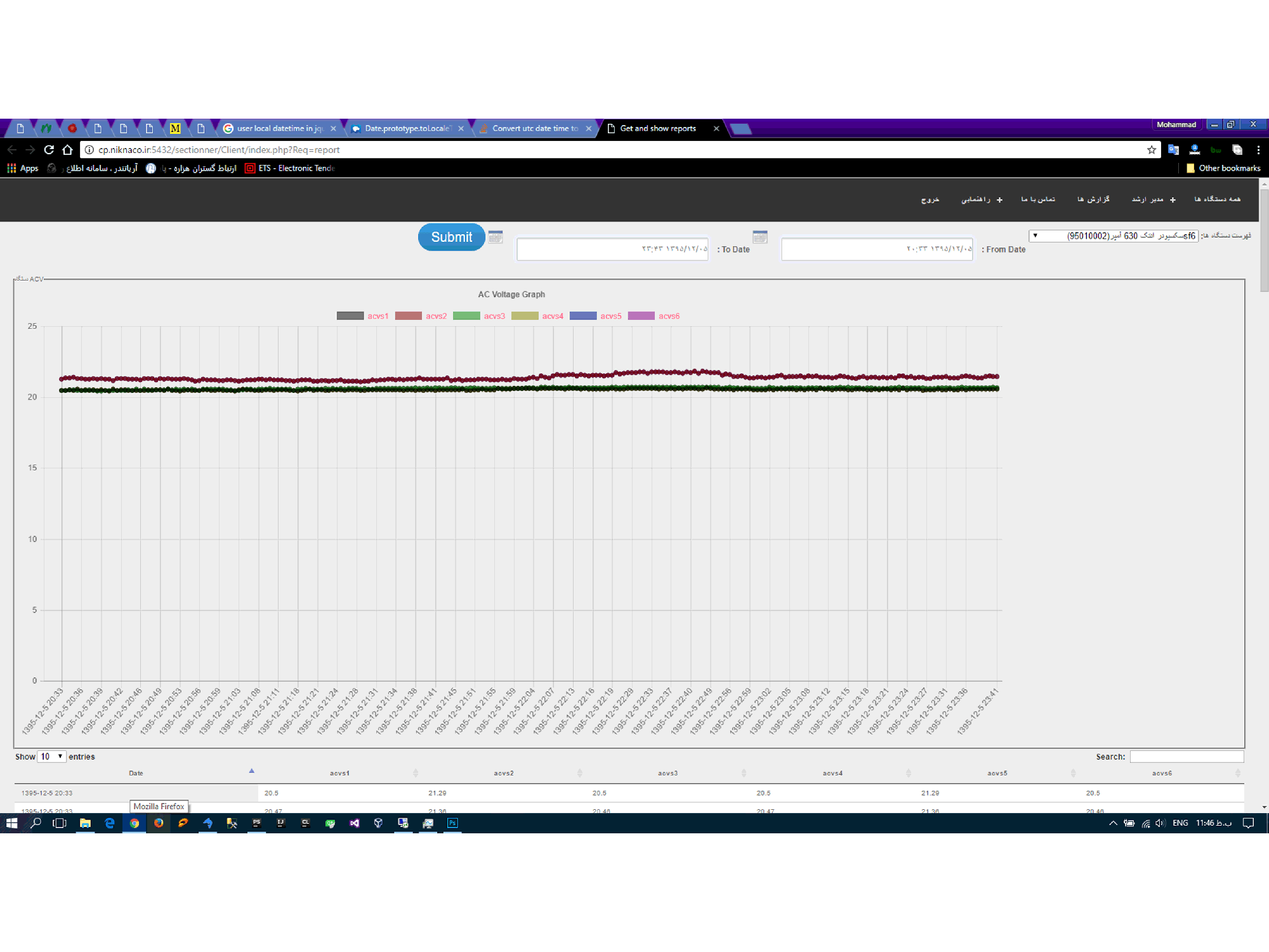 10. نرم افزار مدیریتی برای نمایش داده های عددی وگرافیکی وذخیره درDATABASE با قابلیت فیلتر و جستجو بر اساس تاریخ شمسی برای همه دستگاهها